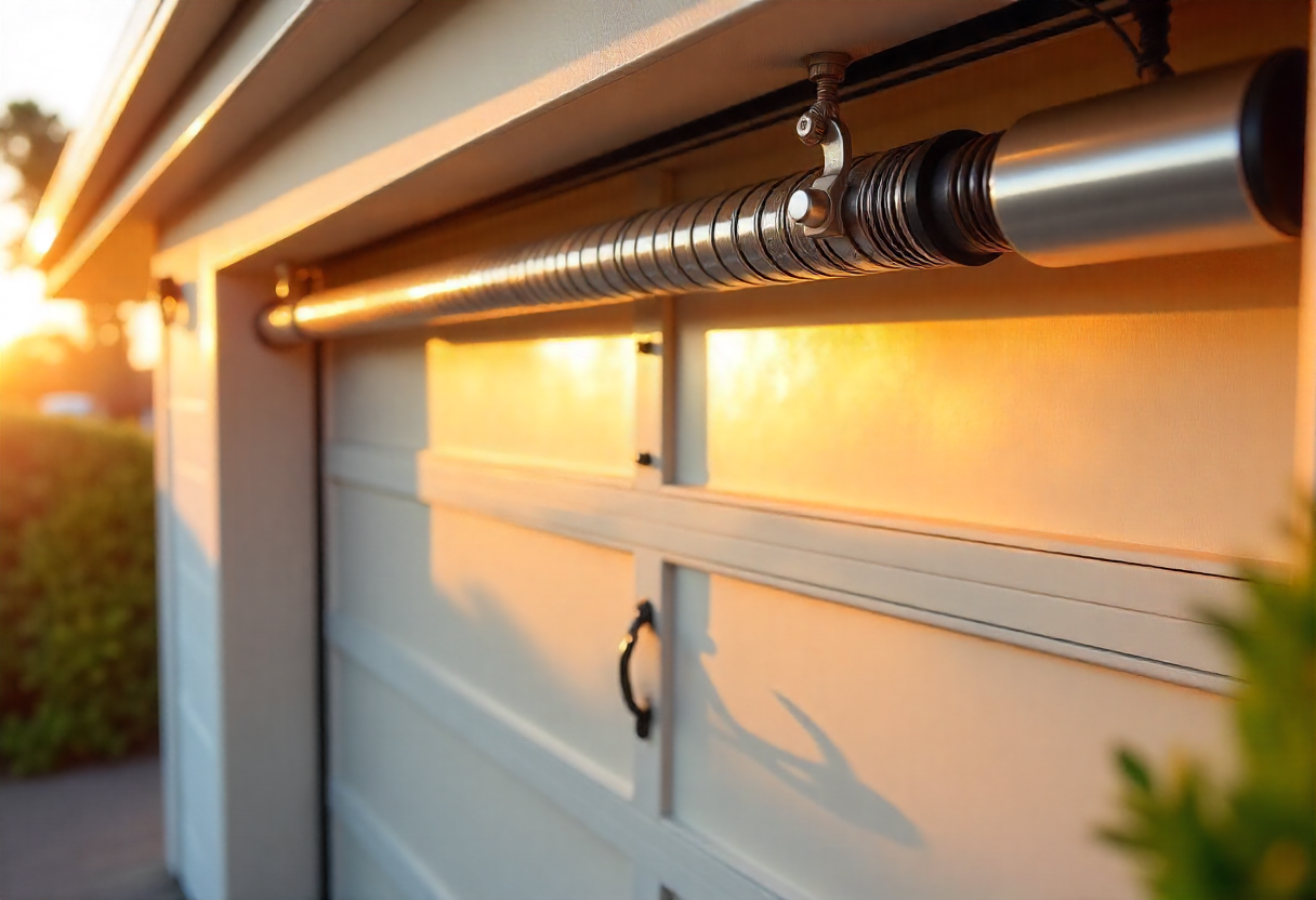 Galvanized extension springs with safety cables on a residential garage door in Northern Beaches, offering a cost-effective and safe lifting system for lighter doors.